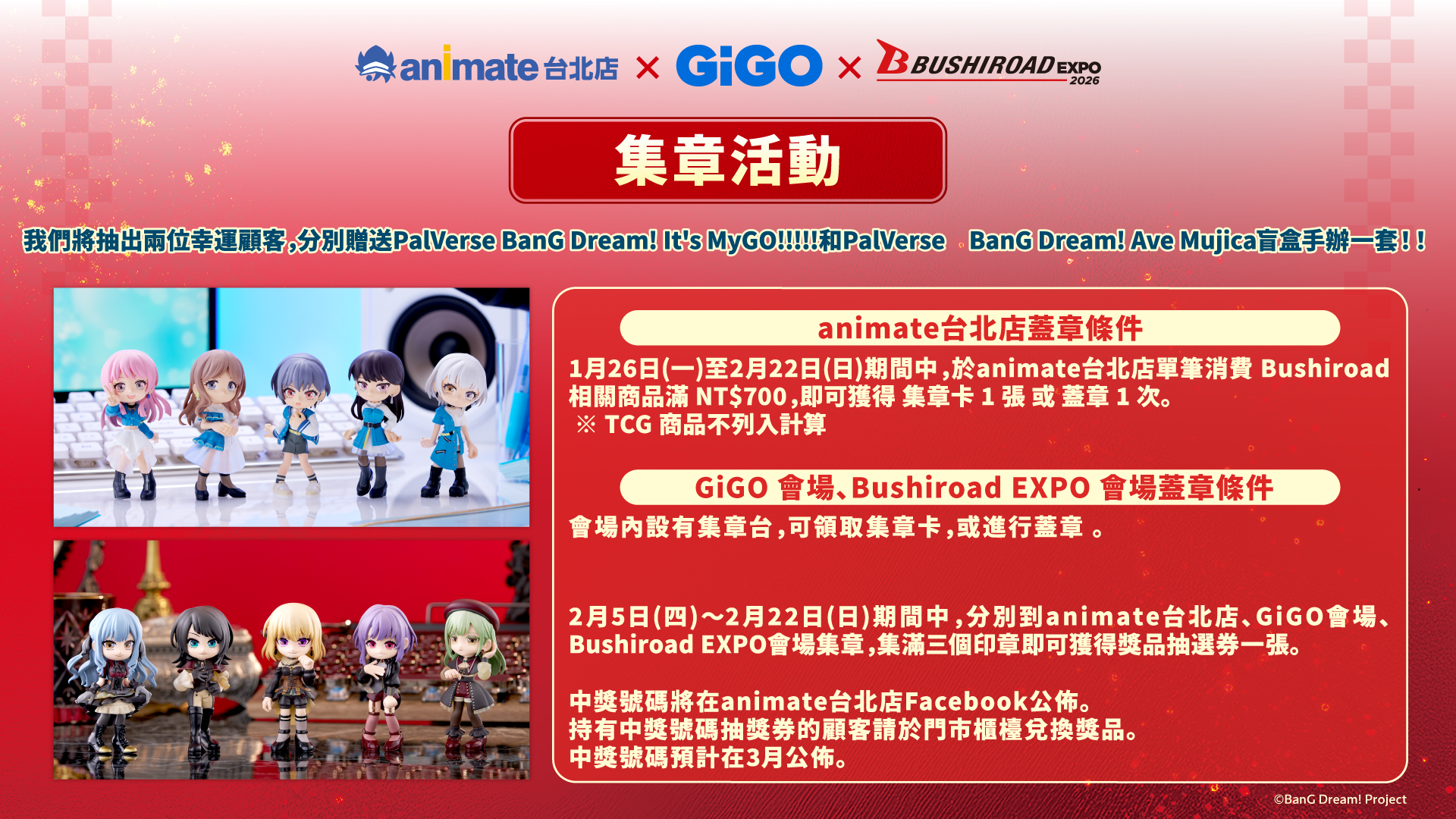 animate台北店、GiGO會場及Bushiroad EXPO 會場將同步舉辦集章活動!