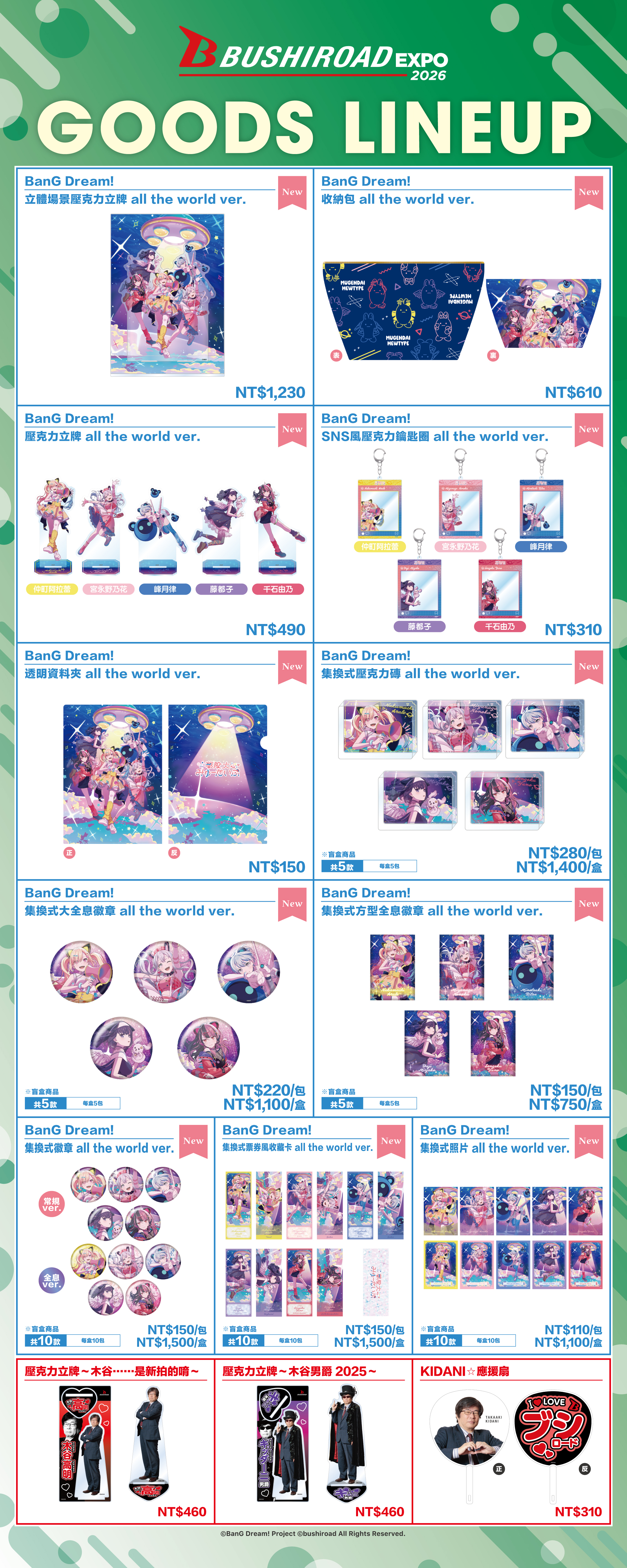 1会計につき1,299台湾ドル以上お買い上げで、特製アクリルコスターをランダムで1個プレゼント!