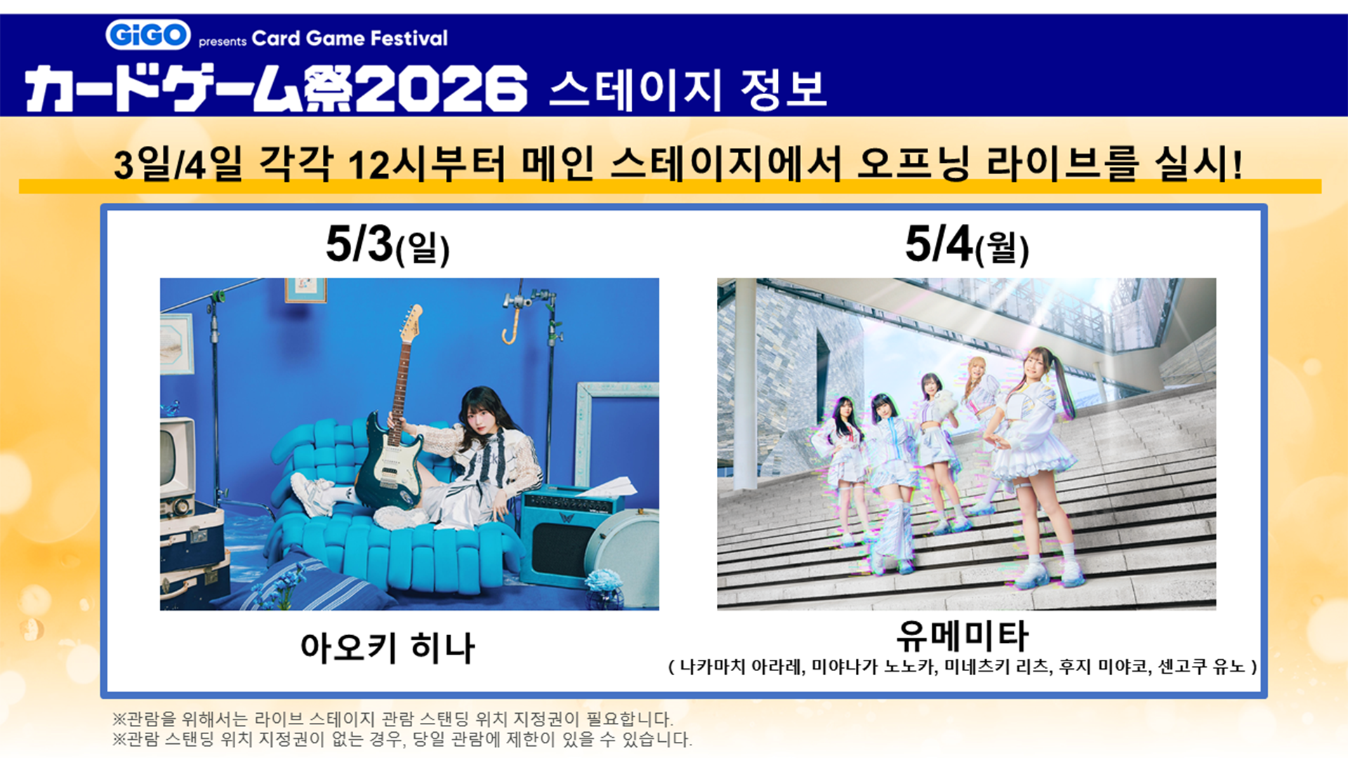 라이브 스테이지를 관람하려면 라이브 스테이지 스탠딩 위치 지정권 외에도 「Card Game Festival 2026」입장권을 구매하셔야 하오니 유의해 주시기 바랍니다.