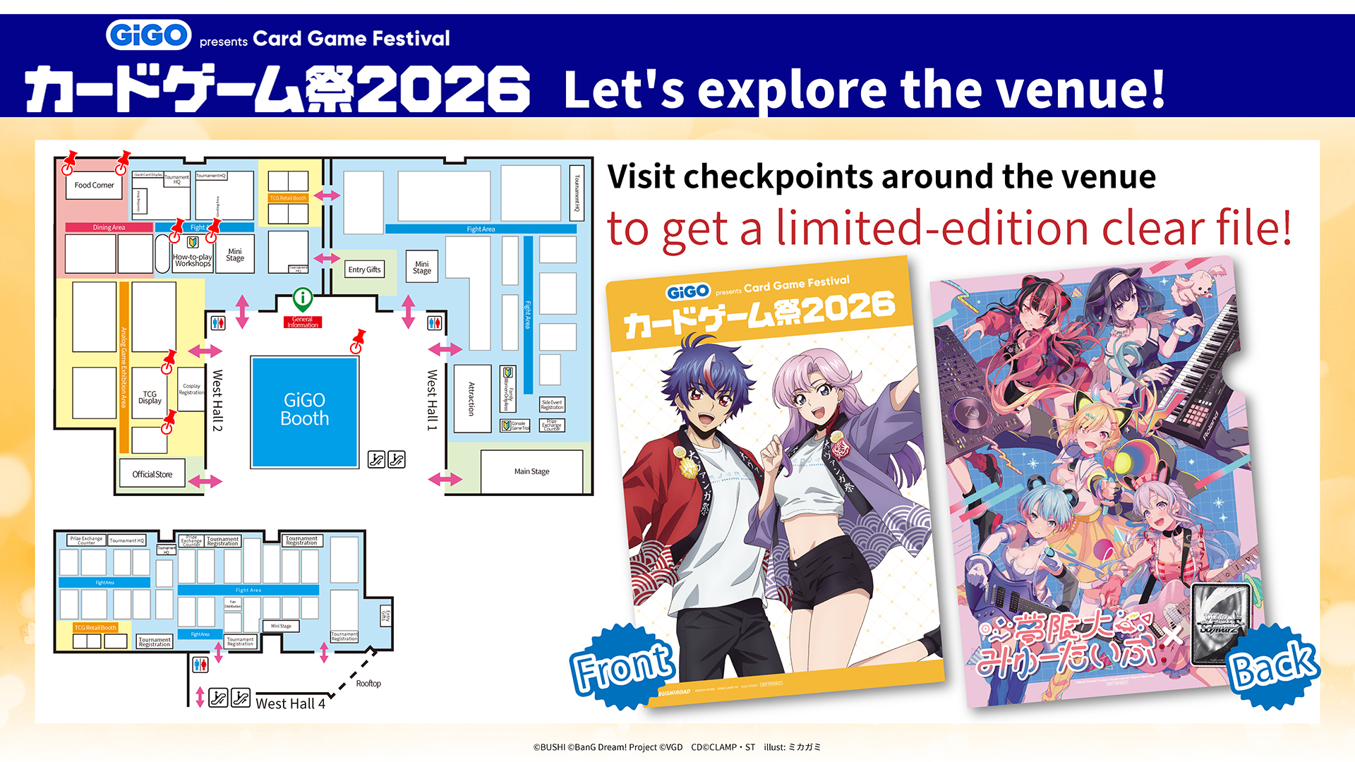 Collect 4 or more stamps from the stamp locations within the venue to get a special Card Game Festival clear file!