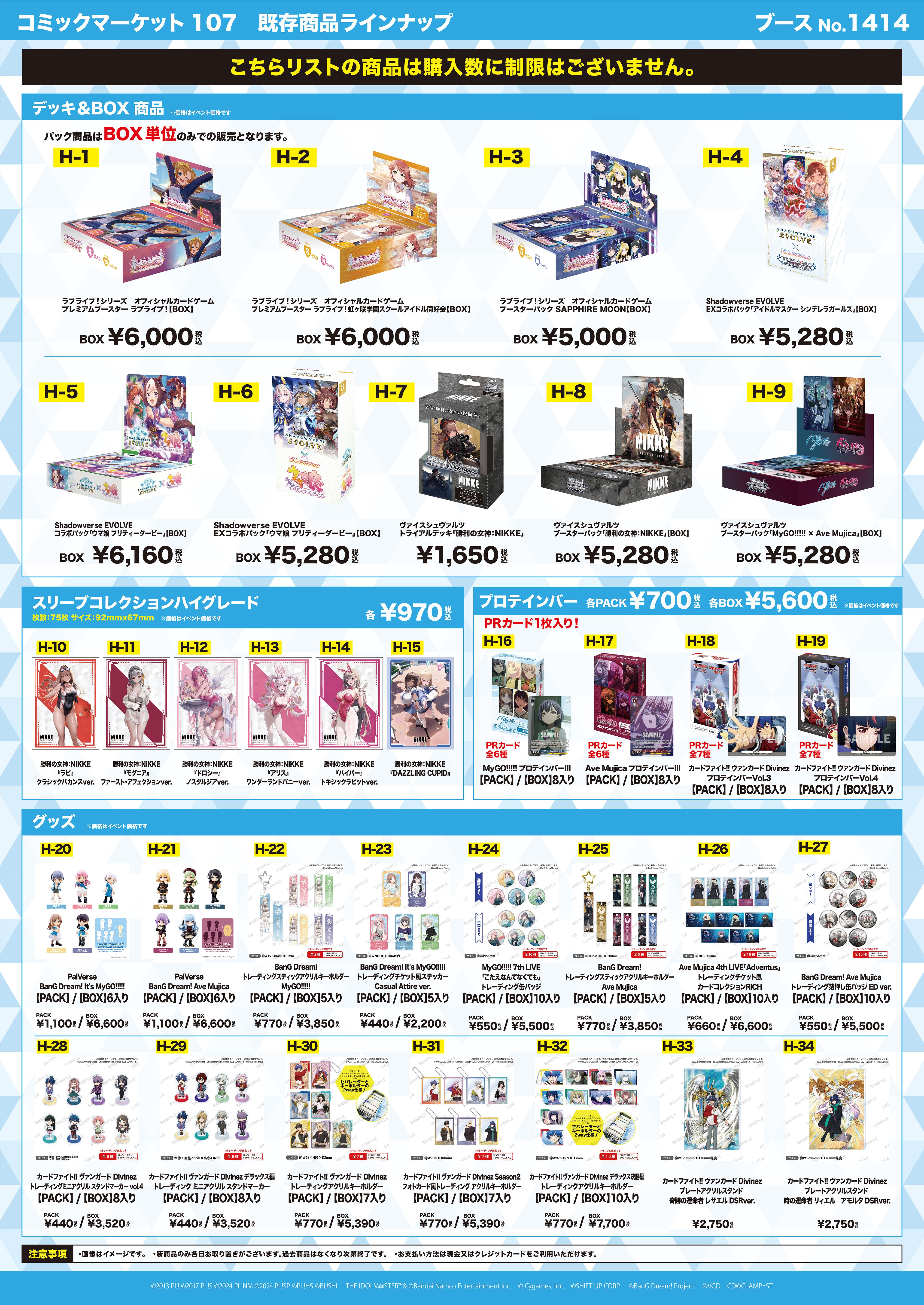 コミックマーケット107 ブシロードブース物販の事後通販が決定いたしました。