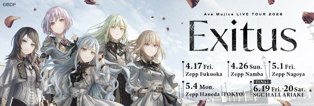 2026年4月17日(金)・Zepp Fukuoka、4月26日(日)・Zepp Namba、5月1日(金)・Zepp Nagoya、5月4日(月・祝)・Zepp Haneda (TOKYO)、6月19日(金)~20日(土)・SGC HALL ARIAKEにてAve Mujicaの全国ツアーが開催。